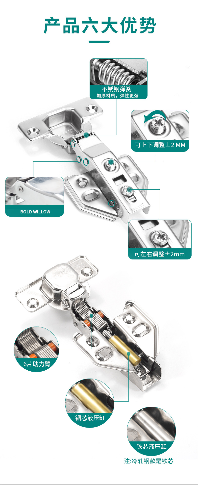 柜门飞机脚不锈钢铰链 液压缓冲自卸阻尼铰链 冷轧钢固装静音铰链