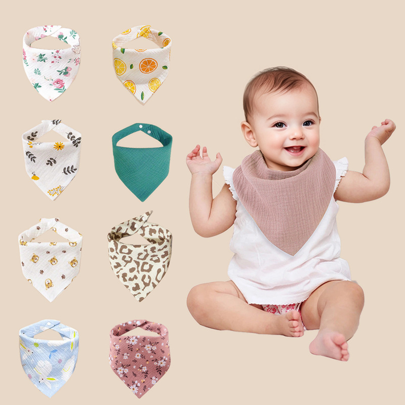 绉布三角巾按扣婴儿三角巾纯棉新生儿围嘴男女宝宝口水巾婴儿围兜