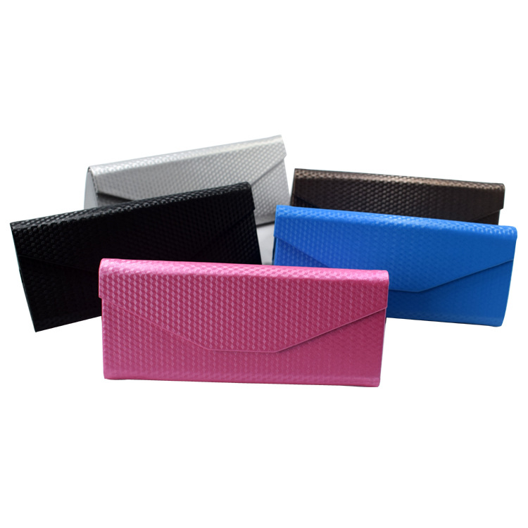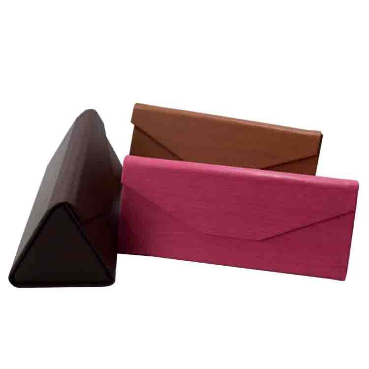 手工三角折叠眼镜盒批发皮质十字纹荔枝纹墨镜太阳镜眼镜盒出售