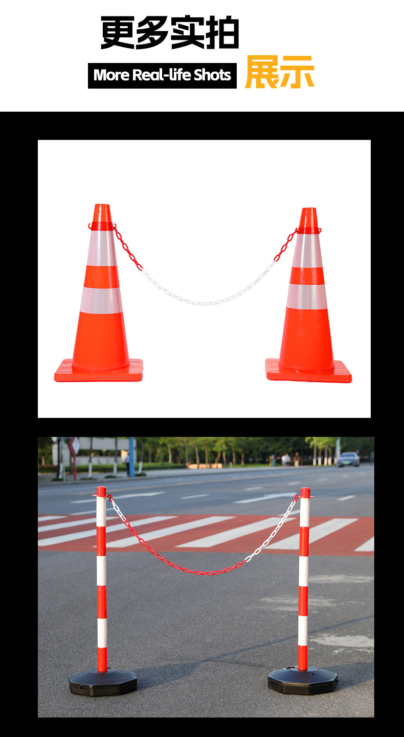 プラスチックチェーン紅白8mm道路工事反射路錐チェーンホテル空港防護隔離警告チェーン