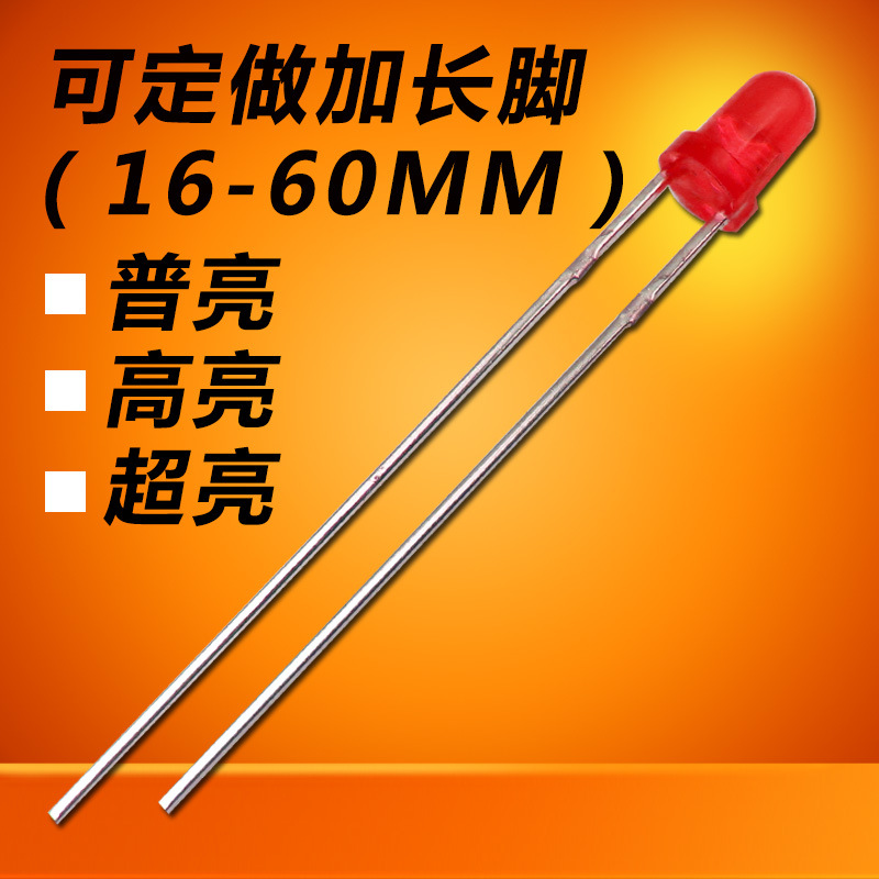 直挿式ランプビーズf3赤発赤長足発光ダイオード3mm赤発赤長足延長足led