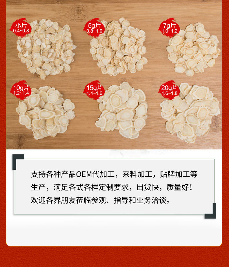 南北朝吉林西洋参軟枝片花旗参段切片カスタマイズ加工メーカー卸売り