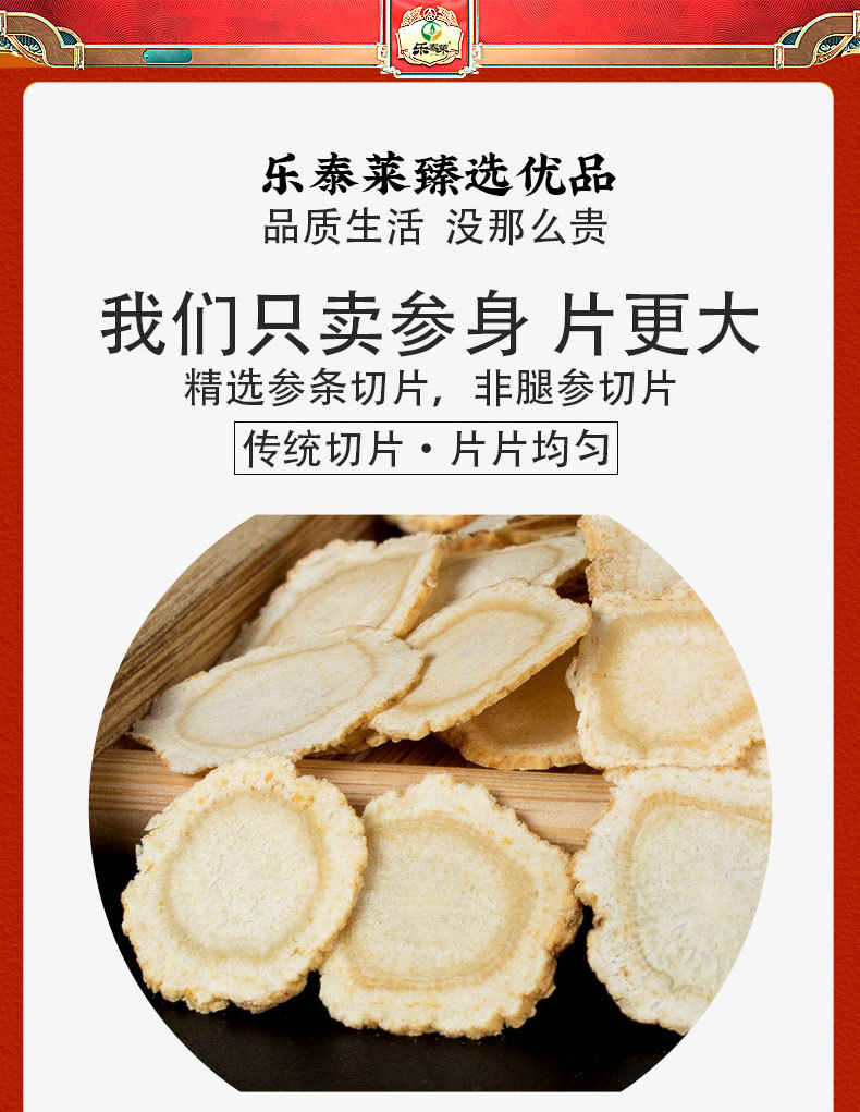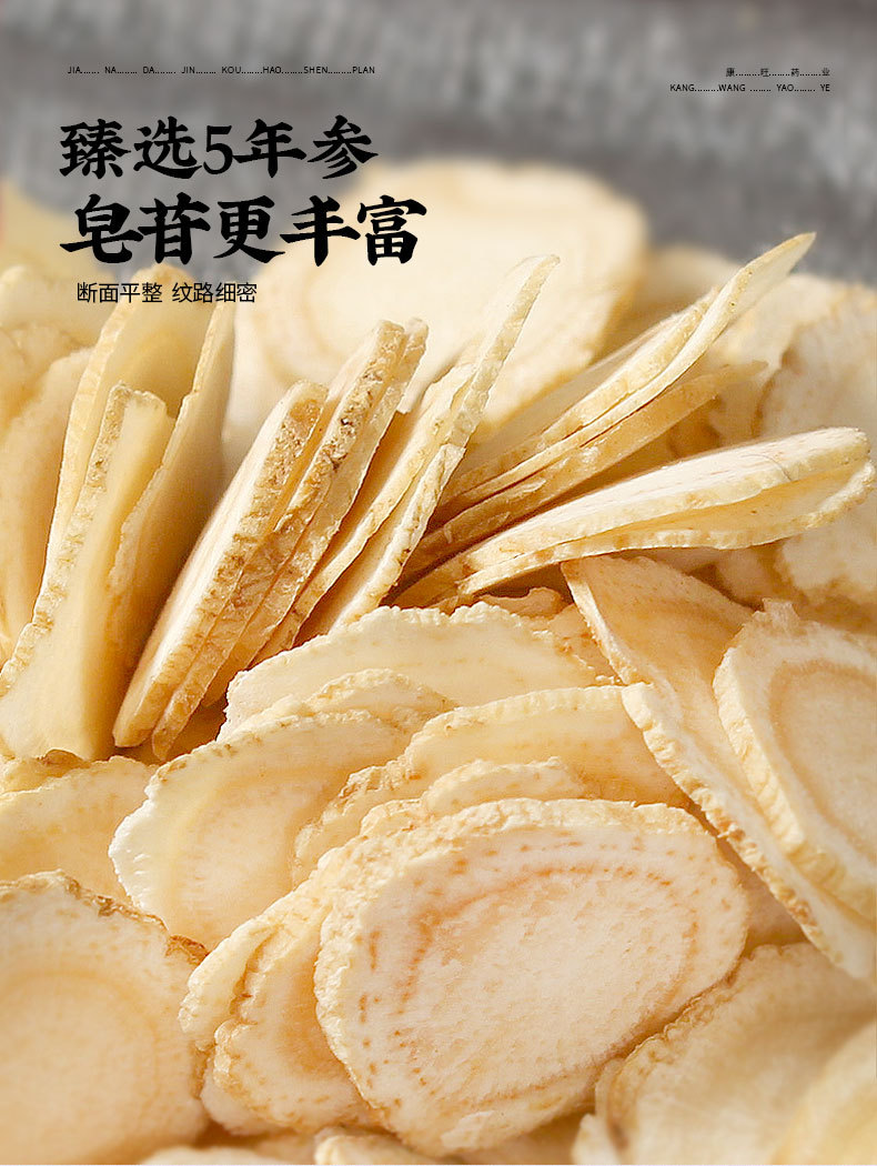 南北朝長白山人参滋補紅参帯参紋ばら積高麗参6年根足乾無糖紅参片