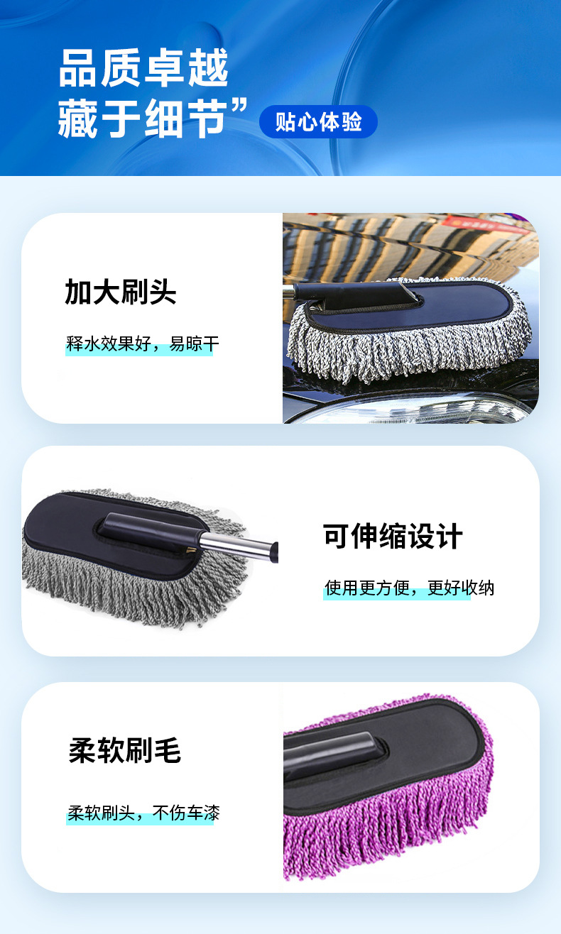 メーカー製洗車ツール、車拭き、静電気防止超極細繊維車ブラシ、伸縮式ダストブラシ、モップ、ワックスモップ、洗車ブラシ