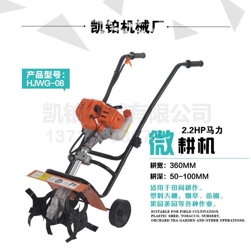 小型多機能耕運機、果樹園・菜園・温室用、土寄せ・溝掘り・除草・播種機、ディーゼル式耕耘機