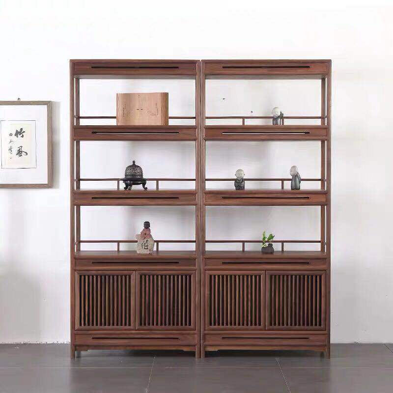 新中国式実木博古架黒胡桃本棚展示棚老楡木多宝閣本棚茶室棚