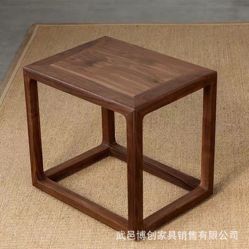 新中式スツール、靴交換用スツール、北米産ブラックウォールナット茶室用角型スツール、茶用スツール、古材無垢材収納スツール、多機能