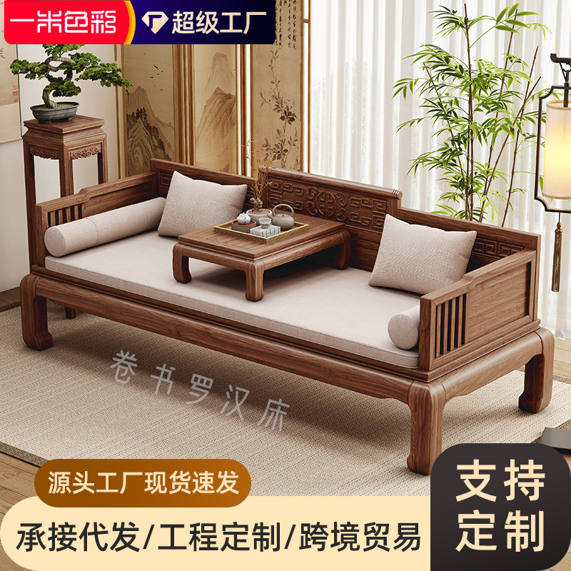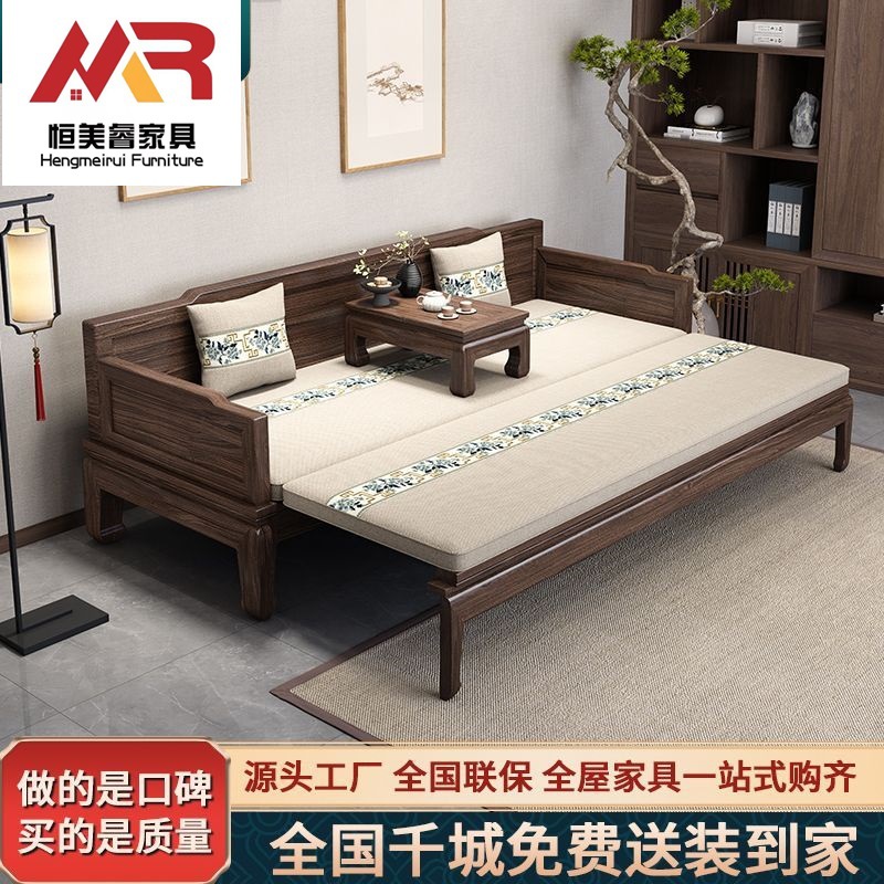 新中式北美黑胡桃罗汉床客厅小户型罗汉榻椅禅意贵妃榻沙发床两用