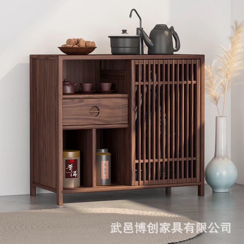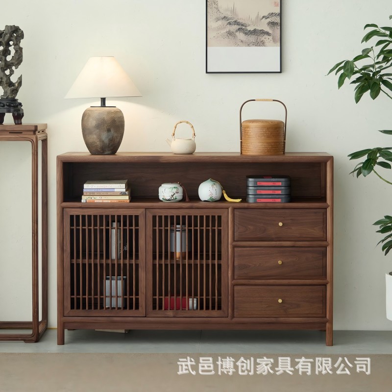 新しい中国風ブラックウォールナット無垢材サイドボードティーキャビネットティーサイドボード古いニレ茶室ティーキャビネット収納ラックローキャビネット