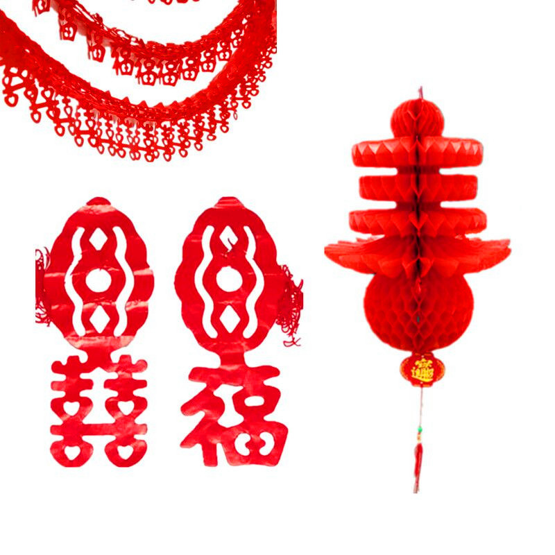 結婚開業祝典の広告のプラスチック紙の大きい赤い平安の春の字の連続の提灯の喜字は花を引いて飾りますメーカーの卸売りを飾ります。