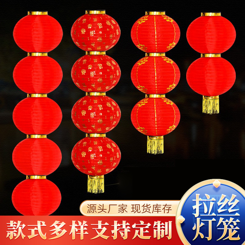连串防水拉丝灯笼燈籠折叠舞蹈新年结婚装饰广告圆红灯笼装饰挂件