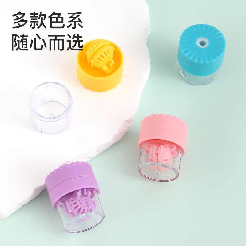 2、双联盒注入七成保存液后、装存镜片(注意镜片放入盒内,请勿放在双联盒边缘)拧紧盒盖。
