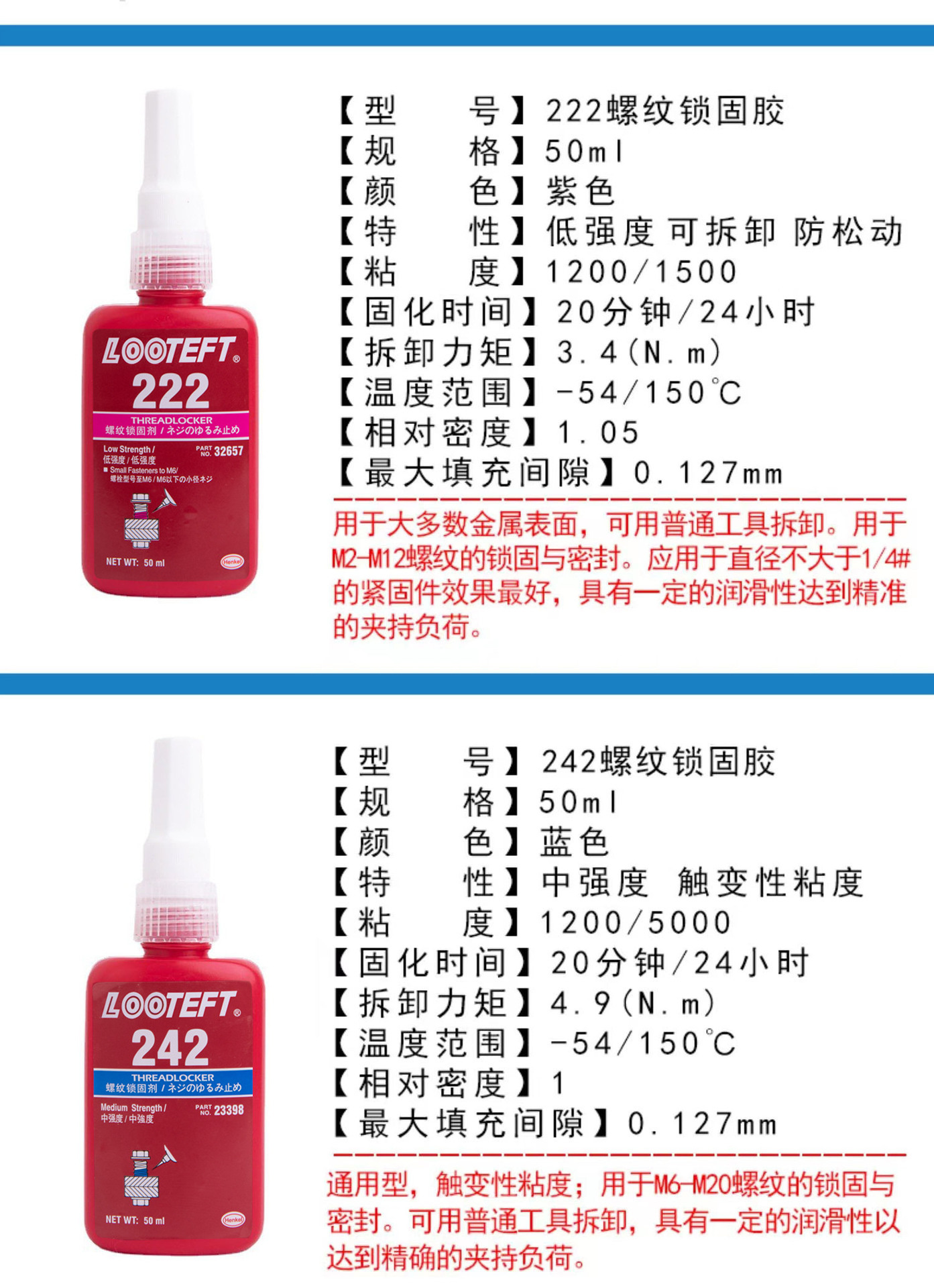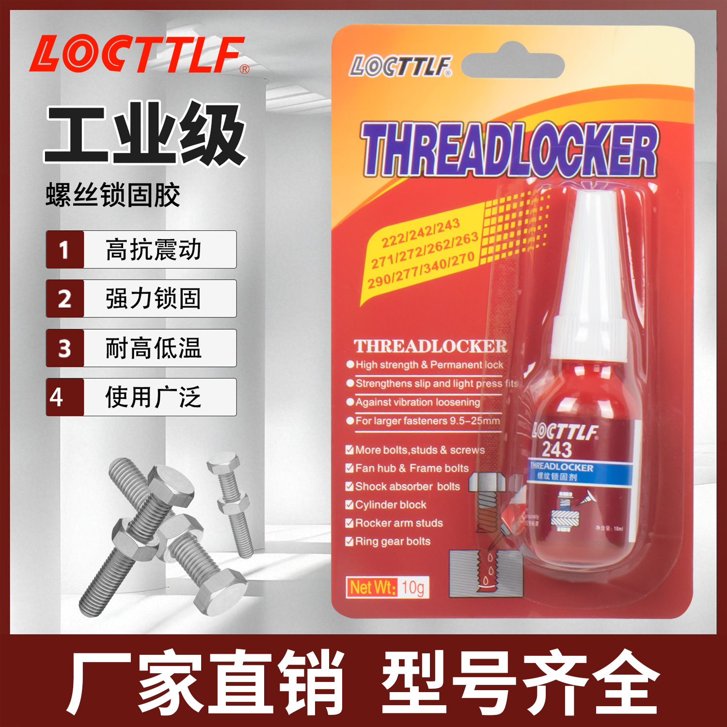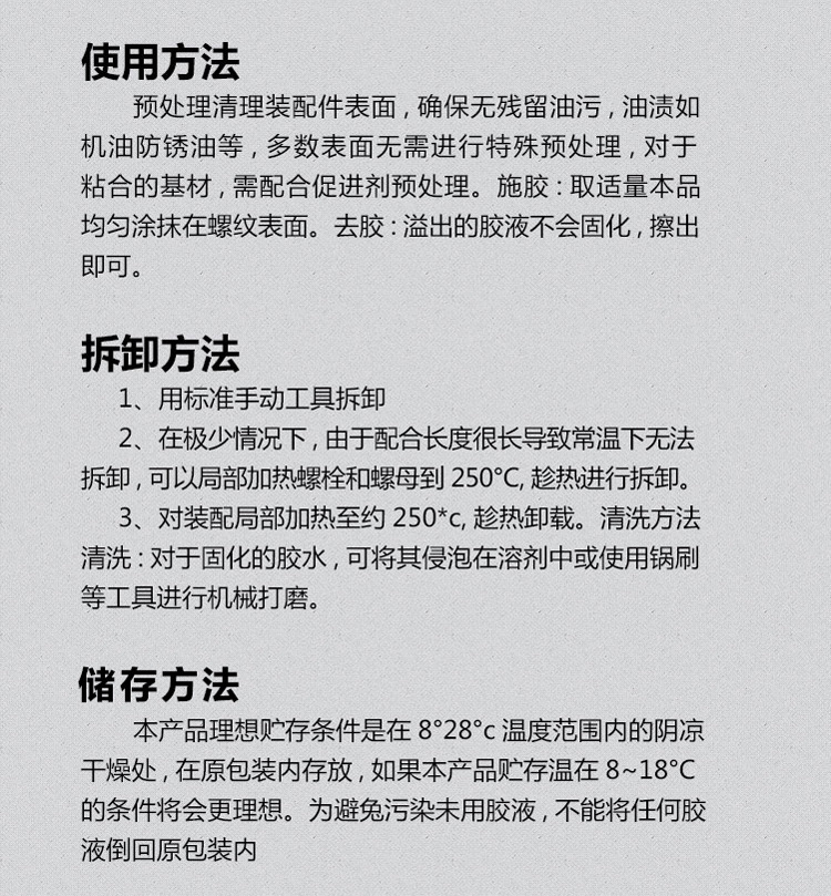 螺纹锁固剂金属螺丝胶 防松动剂紧固胶242/243/271/272螺丝固定剂