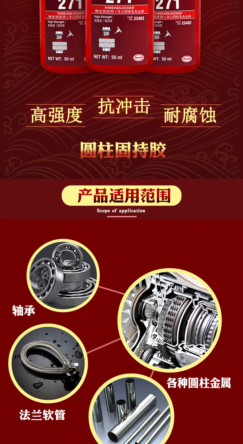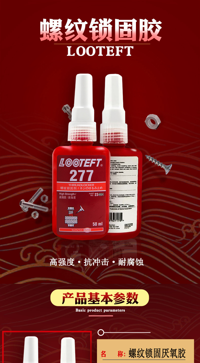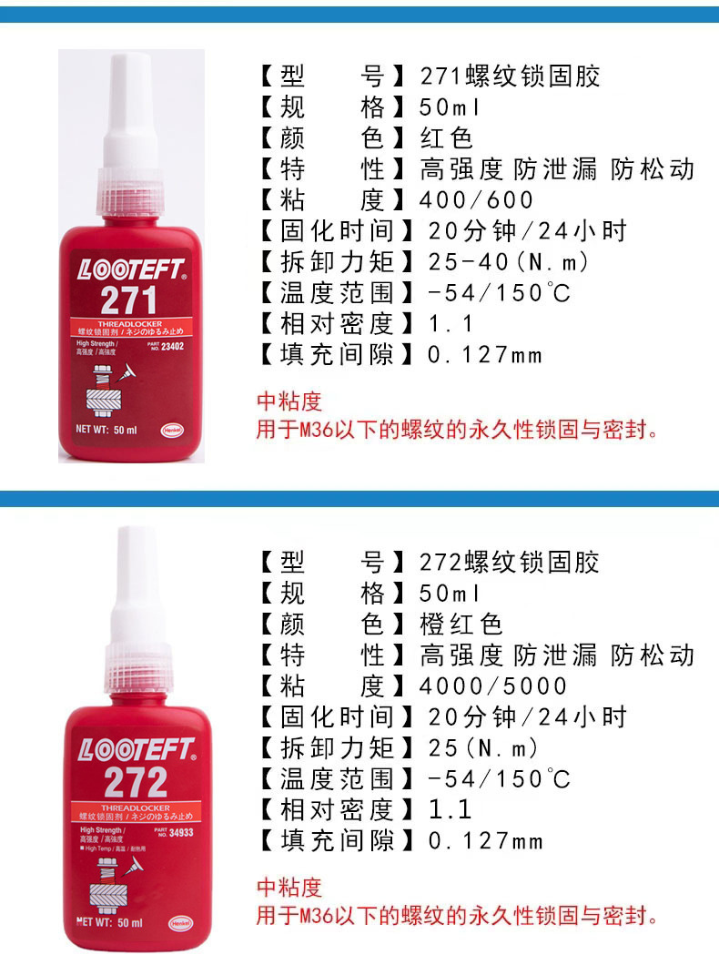 螺丝胶批发耐腐蚀高强度271防松紧固金属螺纹密封锁固剂厌氧胶水