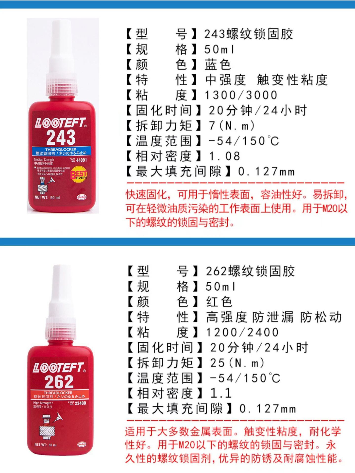 嫌気性ゴム243ブルーゴム耐摩耗性ねじゴム中強度ねじロック剤耐高温シール剤