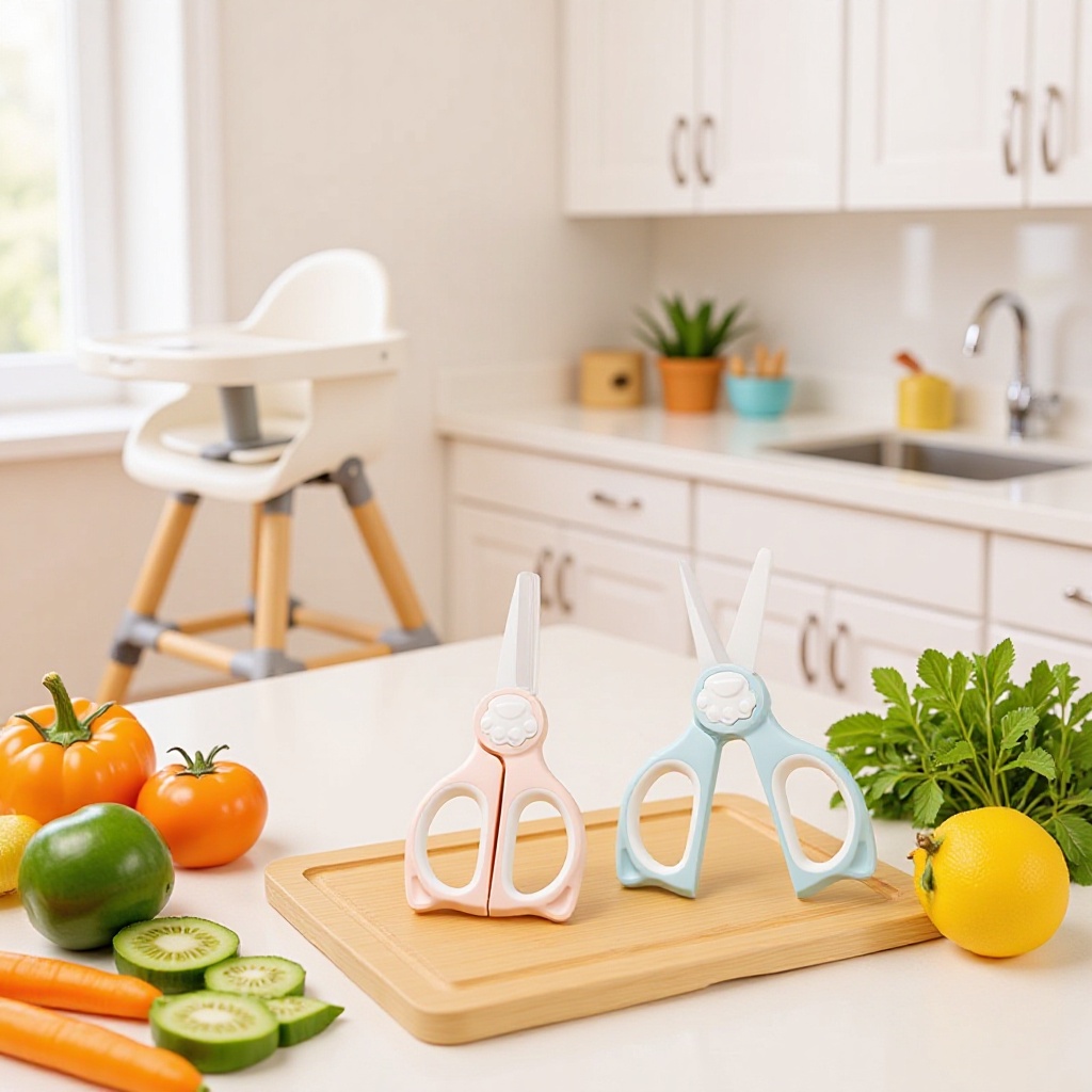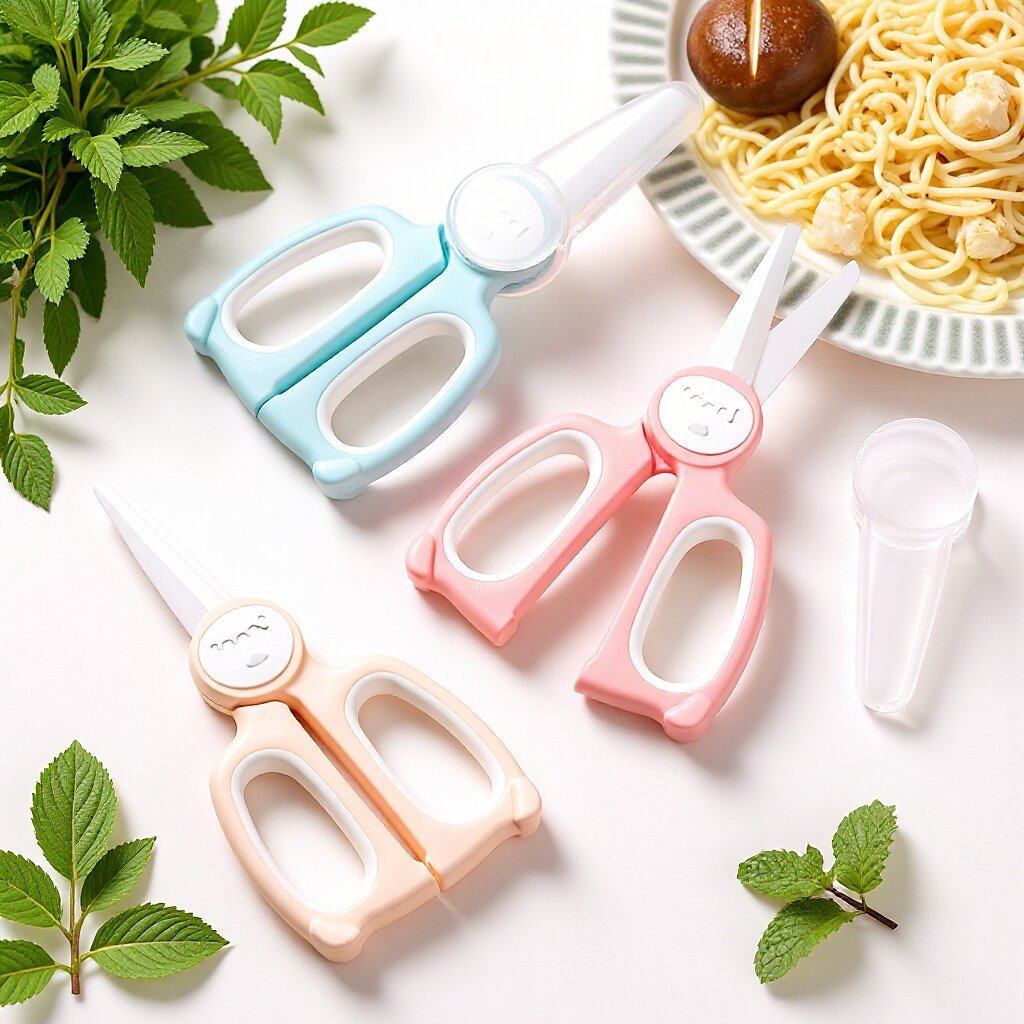 烤肉剪宝宝辅食陶瓷剪刀收纳盒套装 家用厨用食物剪刀厂家批发
