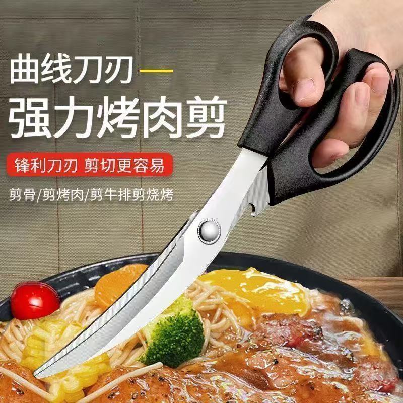 韩式不锈钢弯刃剪刀烤肉剪刀家用厨房加厚商用烧烤烤肉专用牛排剪
