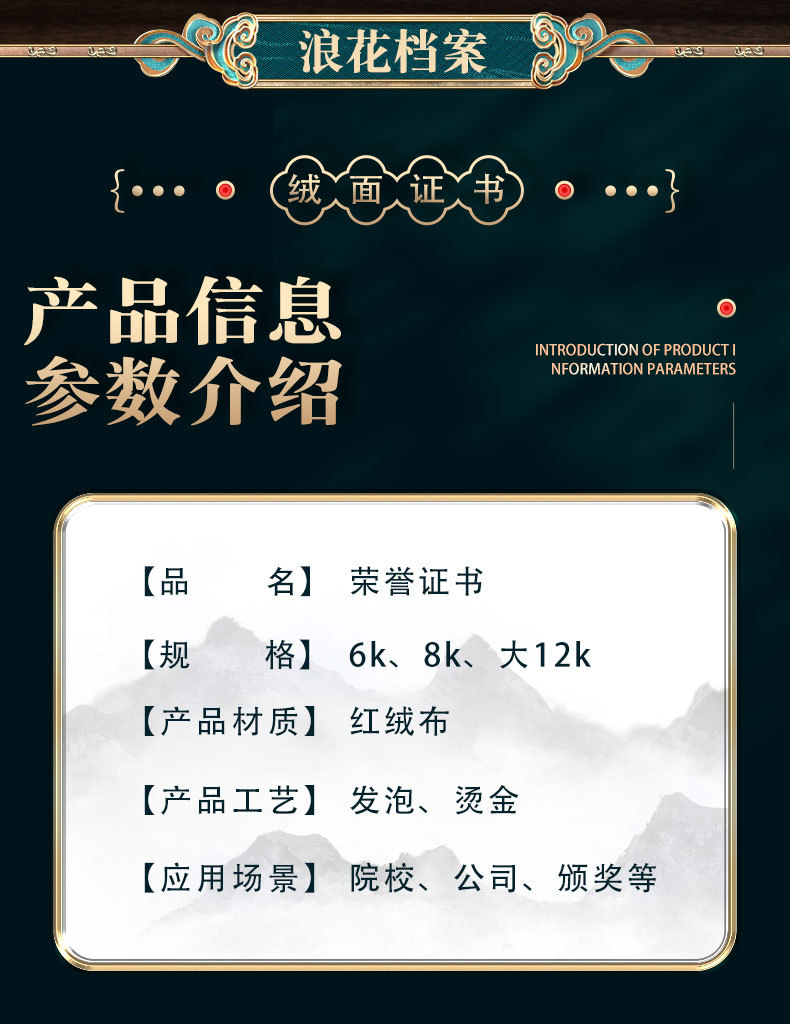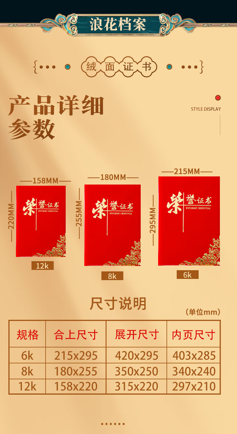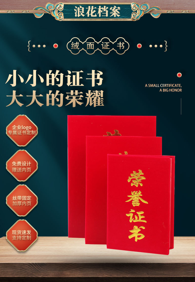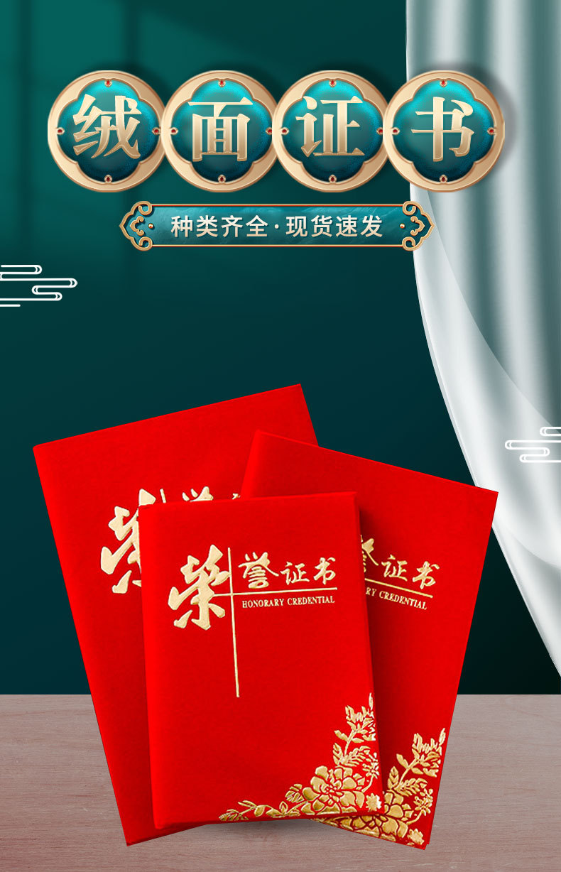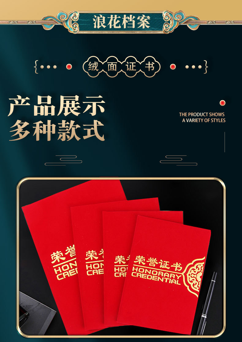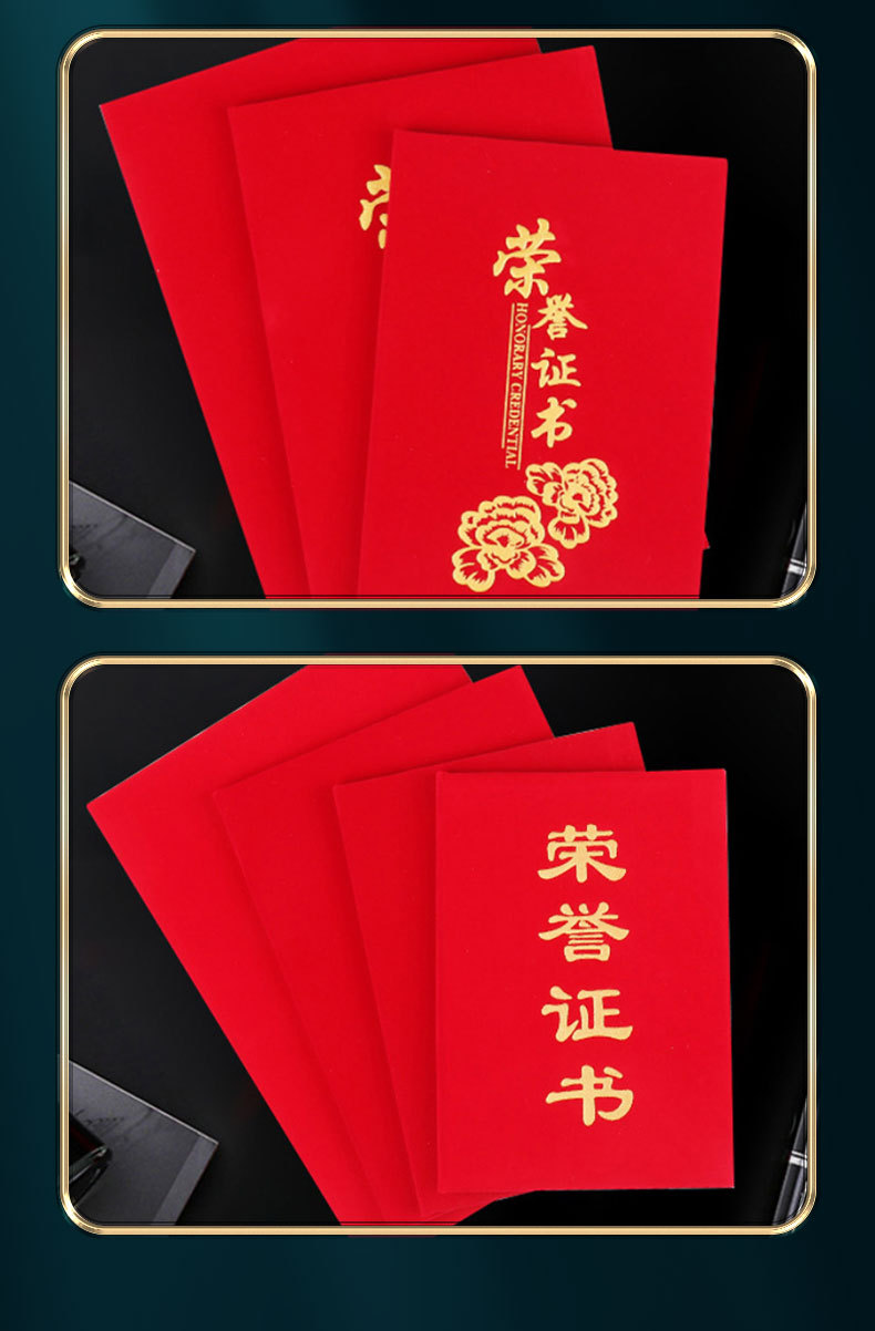 卸売り栄誉証明書6k8k12kベルベット箔押し結納書修了証明書受賞ケース表紙内ページ印刷