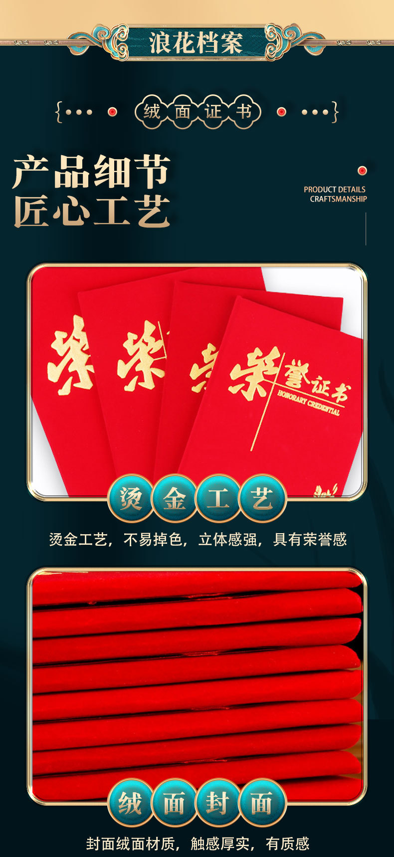 ベルベット製の表彰状封筒、中国風の赤い金箔押し、優秀社員表彰状