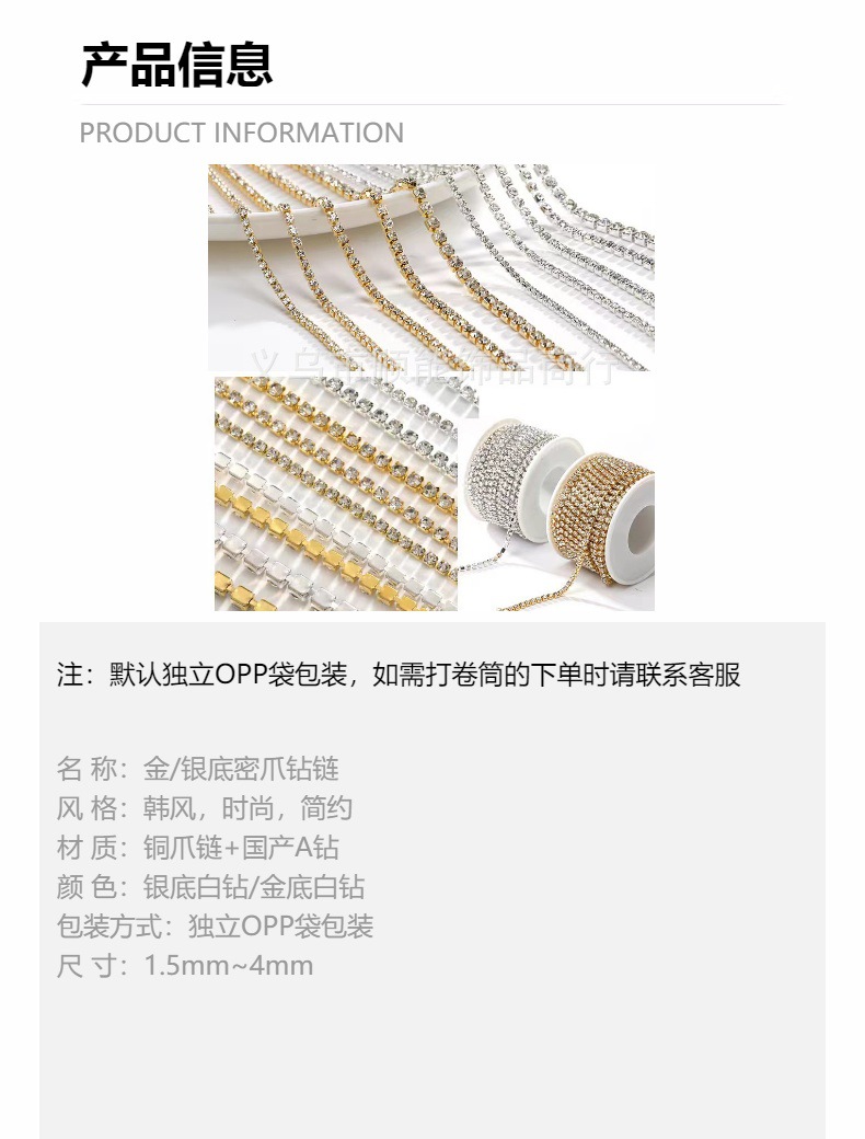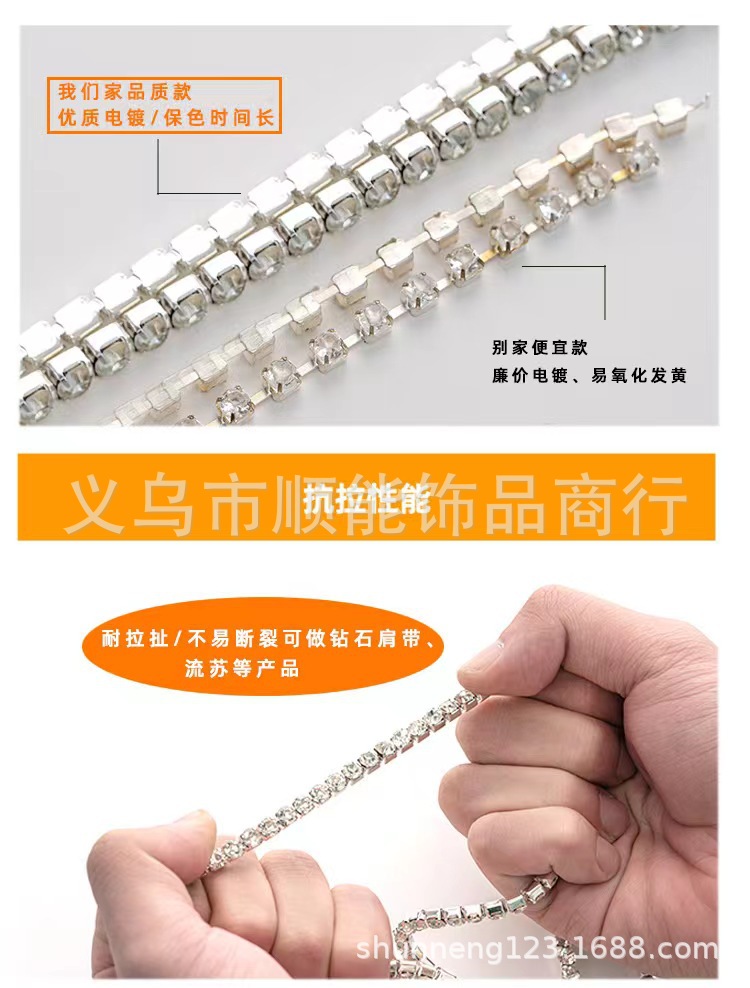 工場直販 銅爪細爪チェーン ラインストーンチェーン ダイヤモンドチェーン ガラスチェーン DIYヘアアクセサリー 衣料品アクセサリー