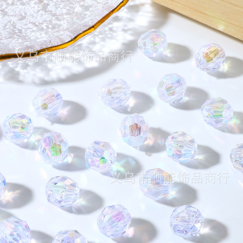 環境に優しく無臭の透明ABカラー丸ビーズ、手作りビーズ、ブレスレット、ヘアアクセサリー、ネックレス、DIYジュエリーアクセサリー