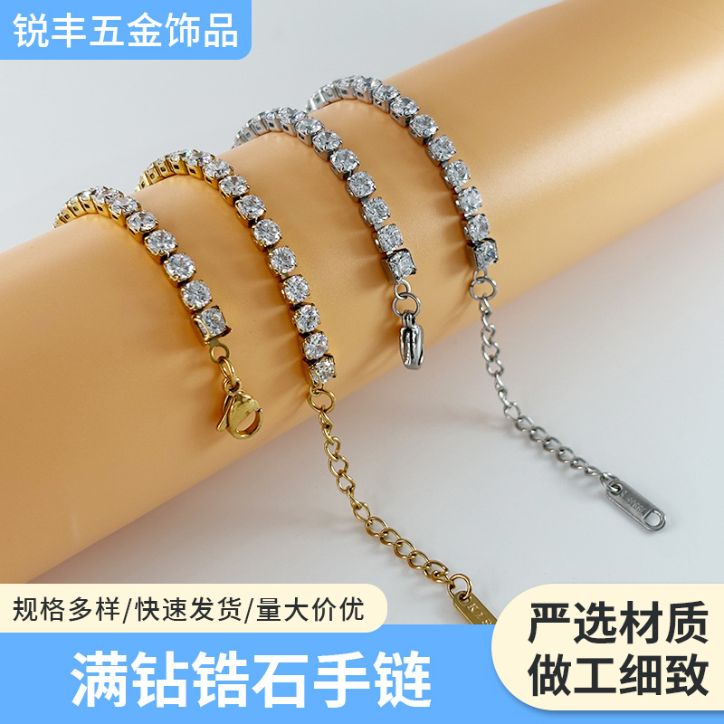 INS スタイルステンレス鋼ジルコンブレスレットテニスチェーンヨーロッパとアメリカのライト高級ファッションフルダイヤモンドチェーンステンレス鋼ダイヤモンドブレスレット