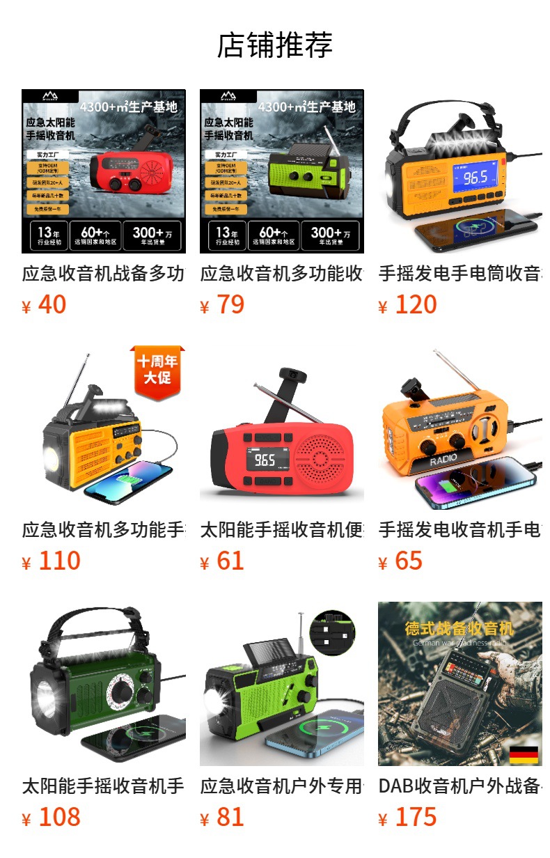 具备收音功能的手摇充电电筒,手摇收音机为应急物品,国内外各大电商平台正在热卖,我们工厂日产量可达7000台,将继续加大产能,为应对国内所需。