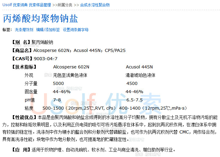 洗浄増効剤PAASポリアクリル酸ナトリウムAcusol 445N