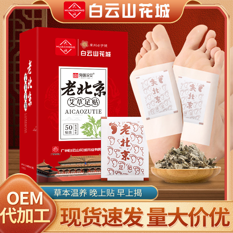 白雲山華城老北京艾草足裏パッチ 竹酢足裏パッチ 睡眠用50枚入り 家庭用卸売 老北京足裏パッチ