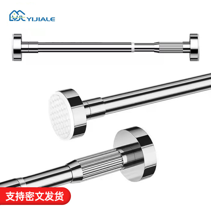 批发免打孔伸缩杆晾衣杆衣浴室银色电镀浴帘杆卧室衣门帘罗马杆