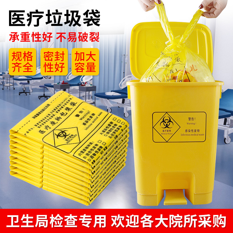 黄色の医療ゴミ袋を厚くして、平口大病院の廃棄物包装袋を厚くします。