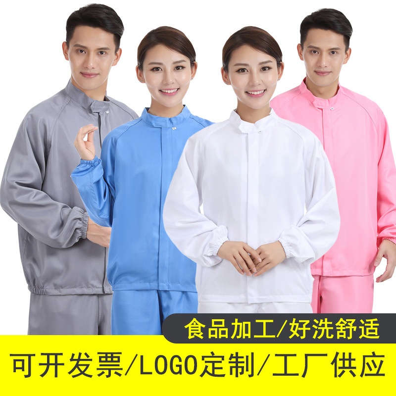 食品工場作業服長袖好洗男女食品工場白色工場セット四季工装労働保険