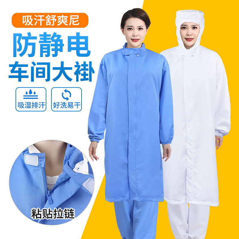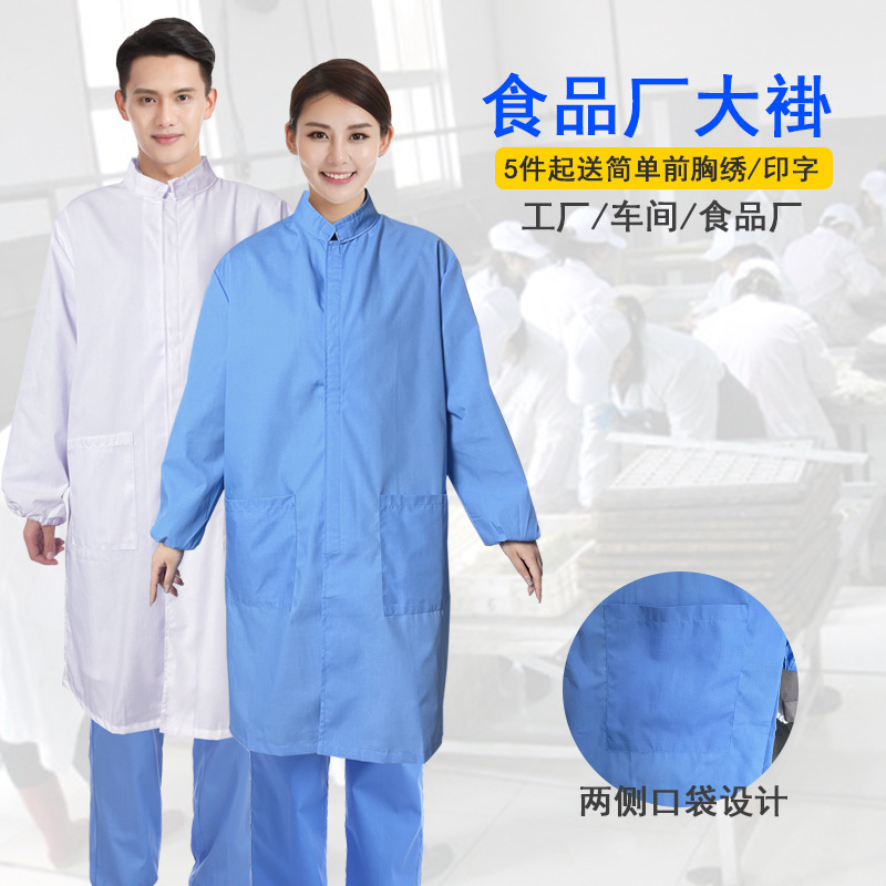 静電気防止白衣食品工場作業服青連帽通気洗浄作業服工場加工男女ロゴ定