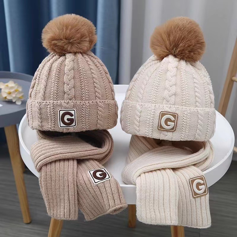 儿童毛线帽围巾二件套男女童保暖针织帽加绒加厚宝宝秋冬跨境帽子
