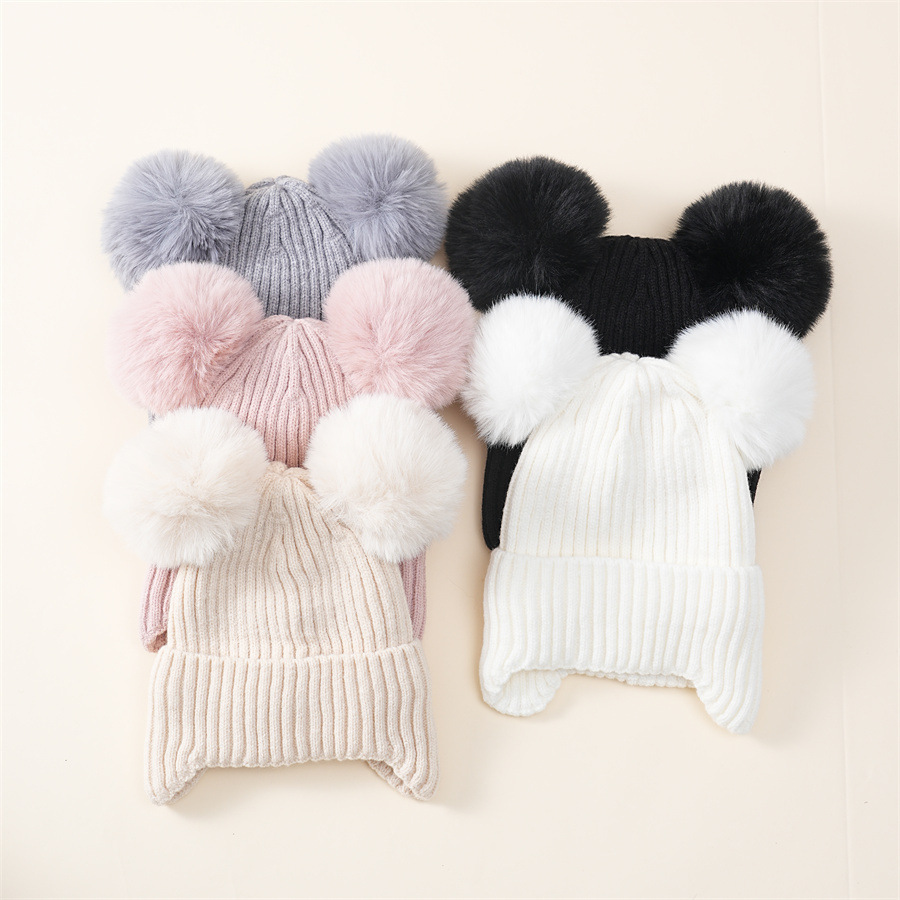 子供のニットの耳の帽子の掘削機のニットの帽子の越境の毛糸の帽子の赤ちゃんの二重の毛のボールのカバーの毛糸