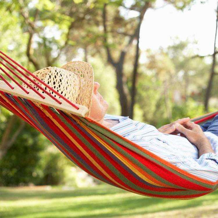 戸外厚手帆布ハンモック卸売り曲げ棒付き二人280*150ハンモックレジャーハンモックメーカー直供