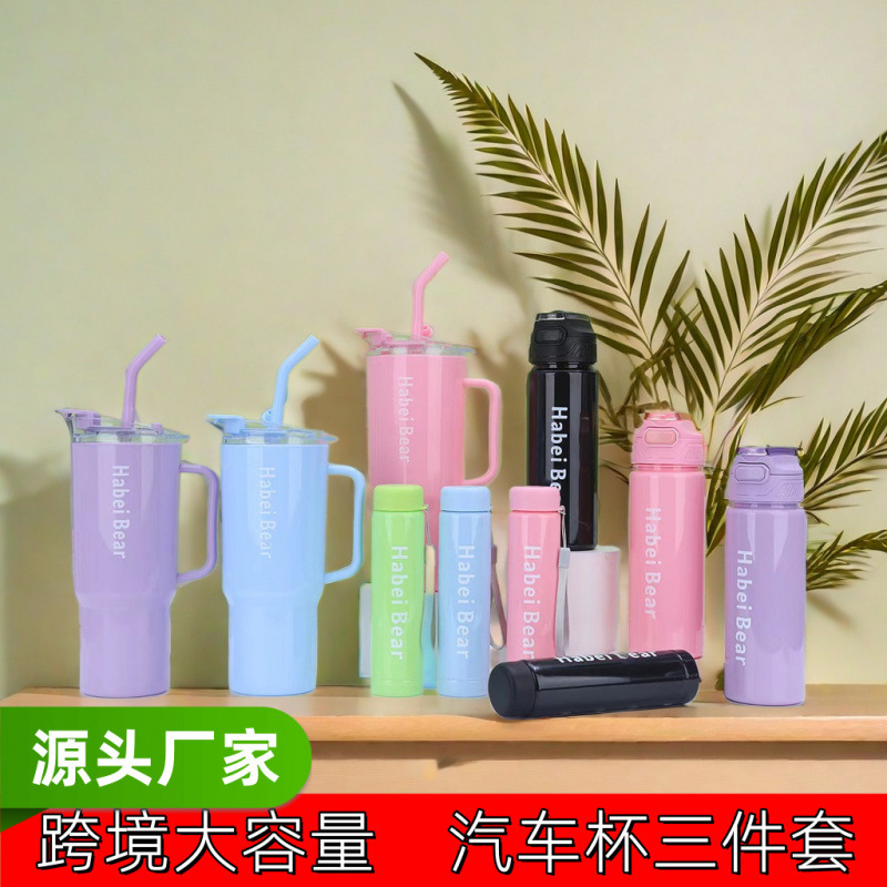 国境を越えたプラスチックカップ三点セット40オンス自動車カップ大容量氷覇カップ携帯ハンドルストロー付きコーヒーカップ