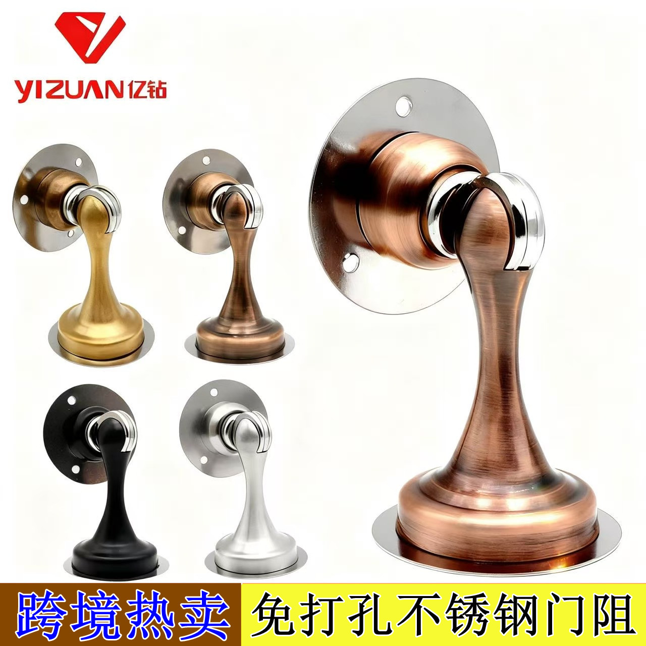家庭用木製ドア用ステンレス製ノンパンチドアストッパー、厚型静音ドアストッパー、越境販売人気商品、金物ドアストッパー