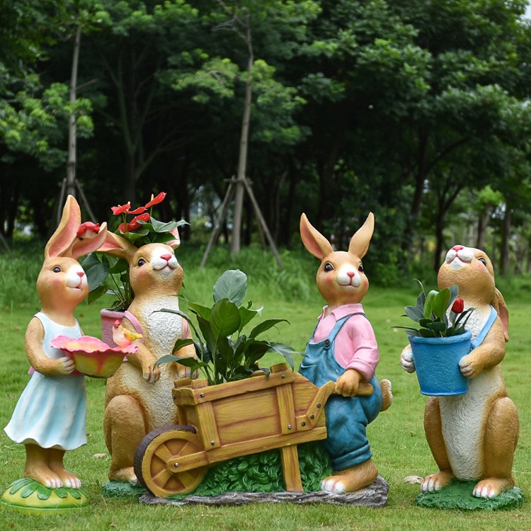 屋外の漫画のウサギの花のかめの創意的な動物の植木鉢の庭園の景観の置物のベランダの幼稚園の彫刻の装飾品