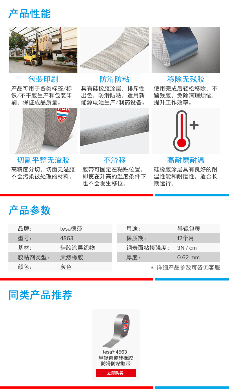 徳莎tesa4863滑り止め防粘シリカゲルガイドロール被覆鶏皮顆粒工業テープ印刷ステッカー