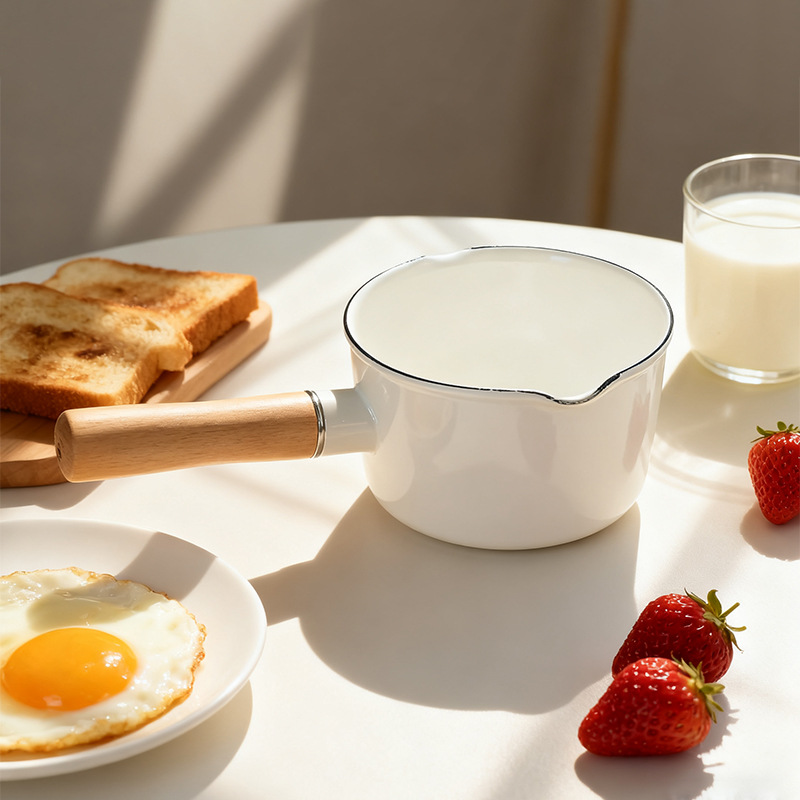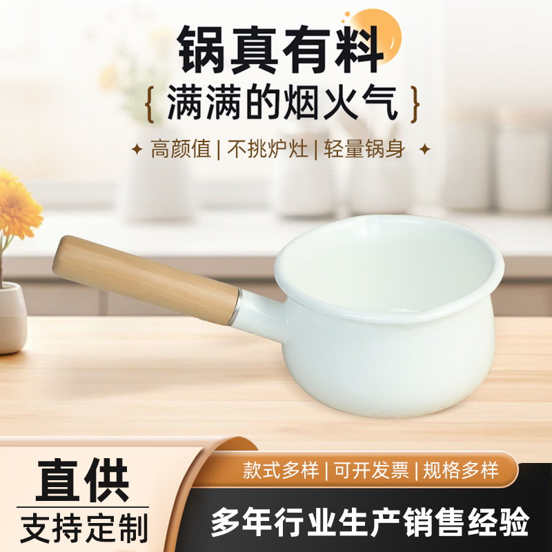12cm日本式シングルハンドルカップラーメン鍋家庭用エナメルスープ鍋両側ガイド口ミルク鍋赤ちゃん補助鍋