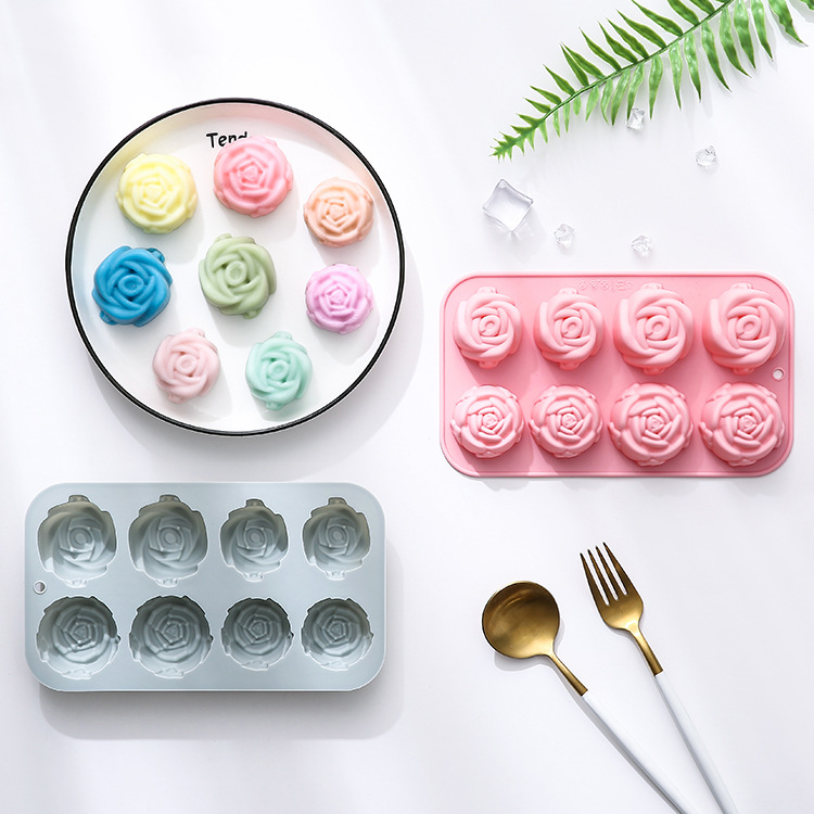 スポット8連2種類の異なる大きさのバラの形のシリカゲル金型手作り石鹸ケーキ金型チョコレート金型