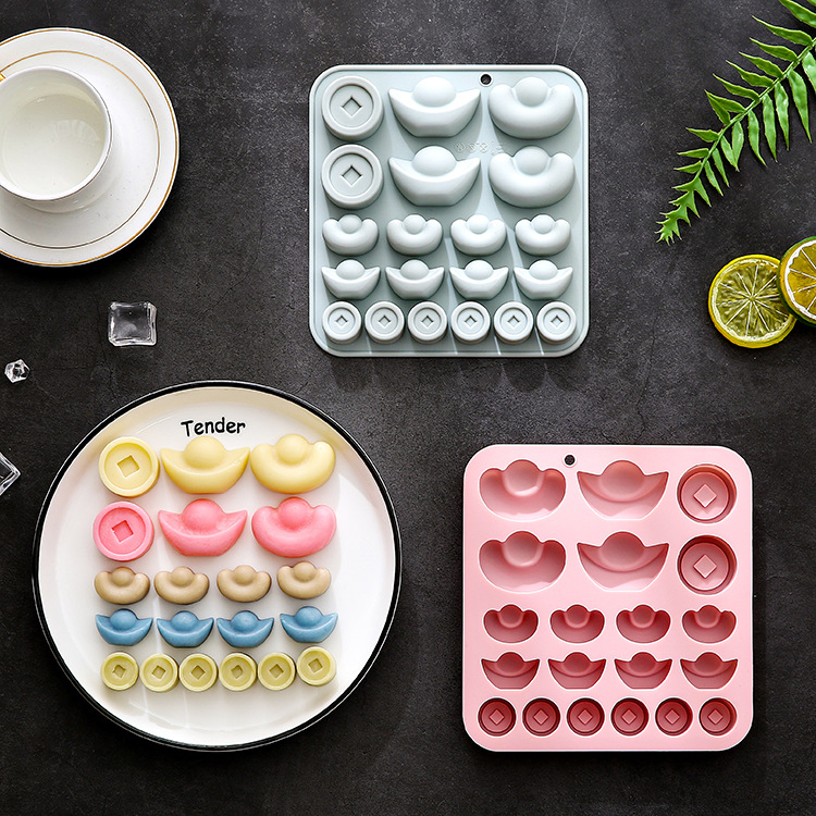 現物20連の異なる大きさの元宝銅銭のテーマの形のシリカゲルの鋳型のケーキの鋳型の氷のチョコレートの鋳型