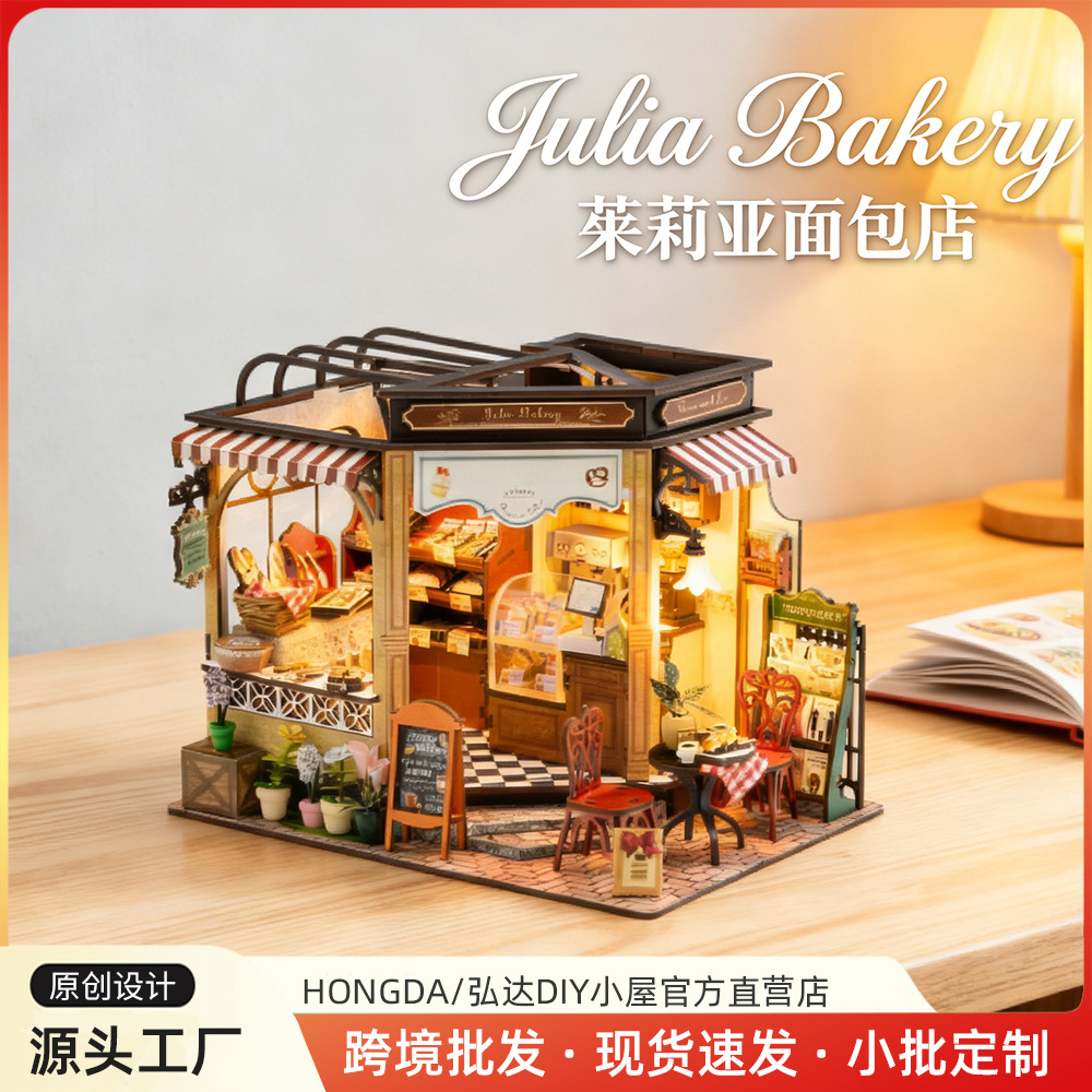 ホンダクロスボーダー組み立て式木製ミニチュアパン屋手作りDIY小屋建築模型ハウスシーン装飾玩具