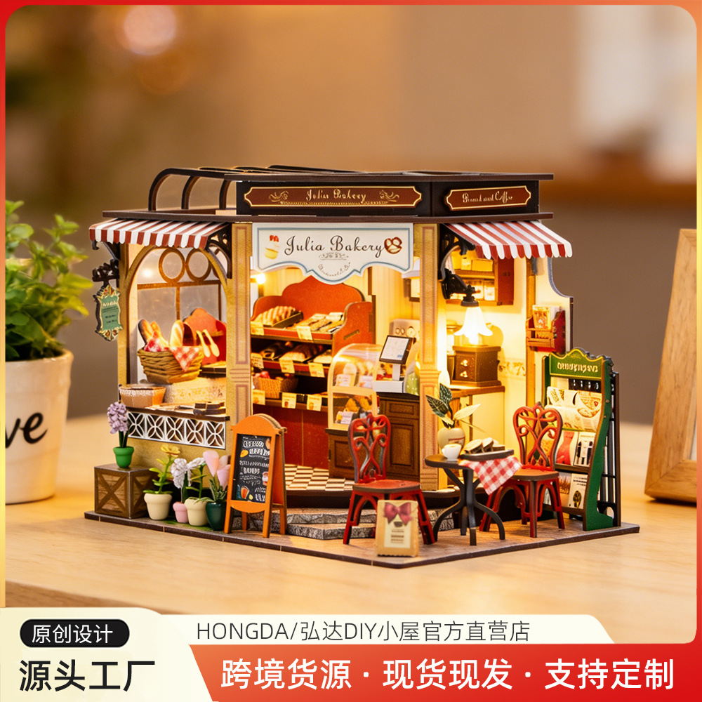 弘達越境DIY小屋模型ミニ手作りパズルブロック組み立てミニチュアシーン装飾玩具ギフト