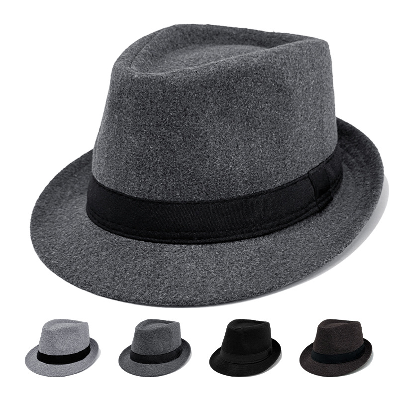 帽子、ウールの小さなつばの男性用シルクハット、ジャズハット、盆地帽子、ウール素材の秋冬暖かい帽子、老人の帽子、メーカー卸売