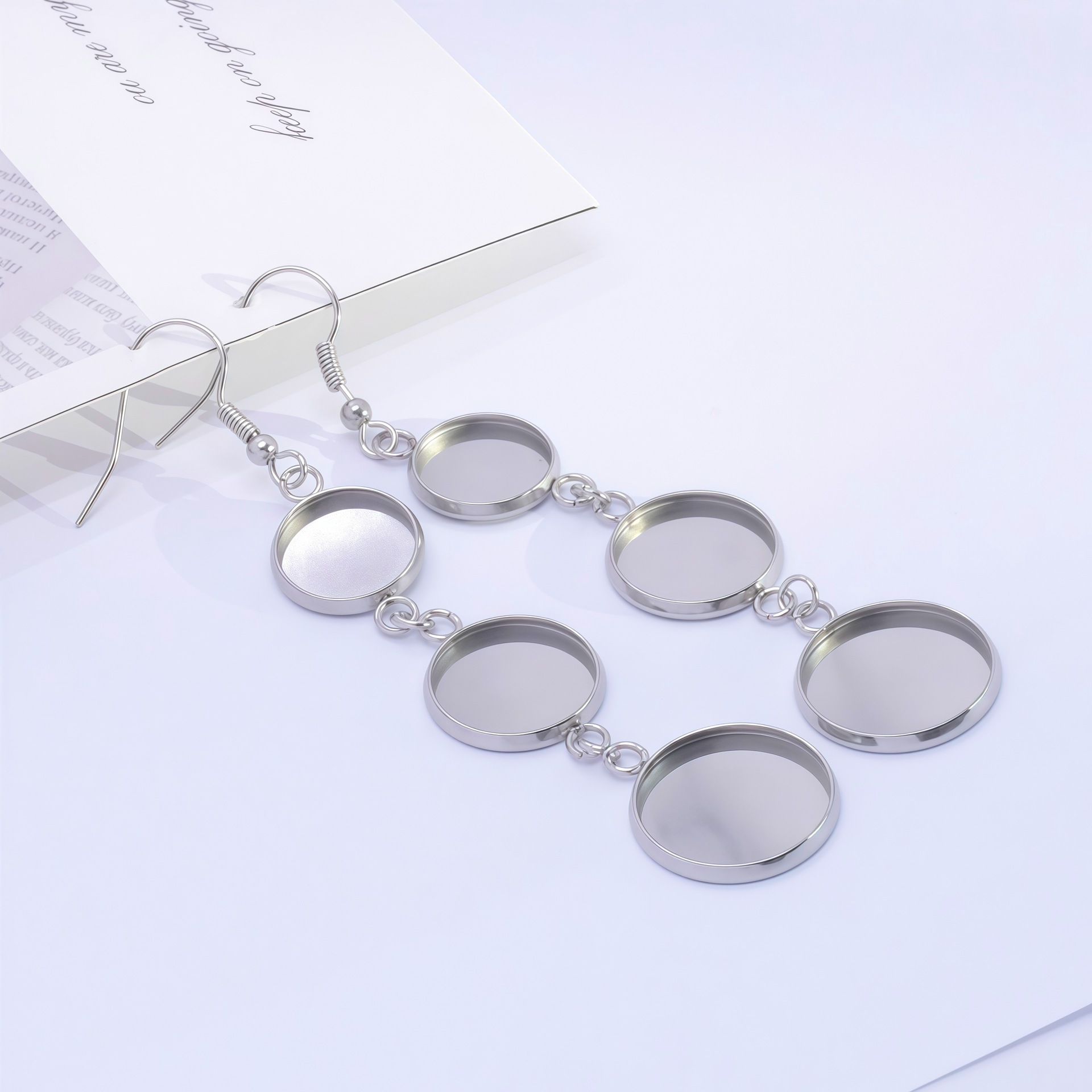 ステンレス鋼のディスクイヤリング、平底丸トレイ、タイムジェムストーンベース、DIYジュエリーアクセサリー、在庫あり、卸売