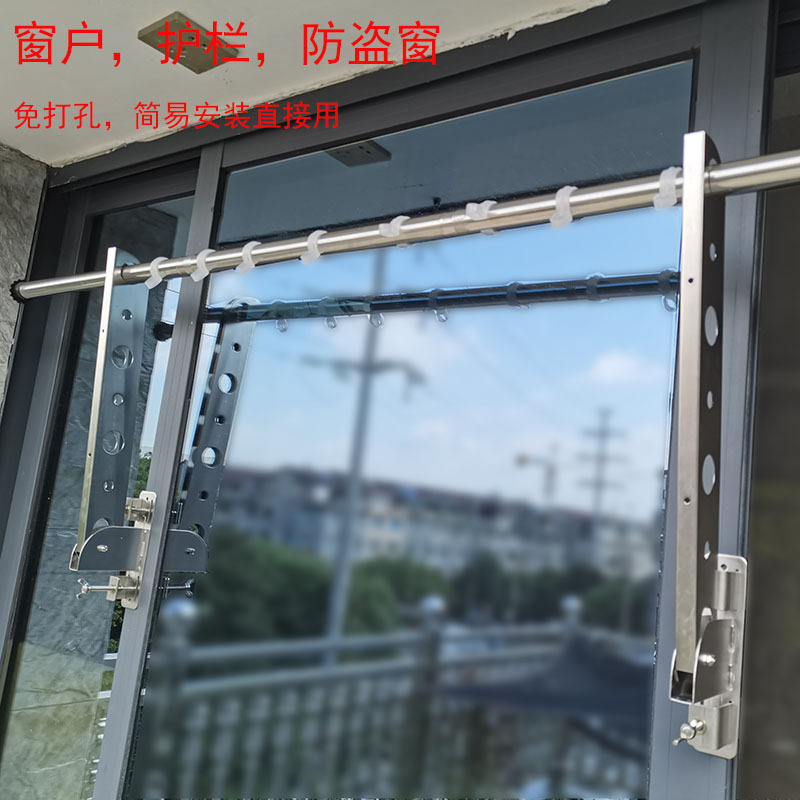 温馨提醒:有方形卡头【可卡1.5cm-4.8cm的厚度】一般安装于扁的或方的竖方向侧面位置。圆管卡头【可卡1.3cm-3.5cm的直径】安装在防盗窗上的,要看防盗窗的竖杆是什么形状,因这个是安装在竖杆上的,不明白的可以咨询客服 谢谢。杆子是拼接而成,每根管子45厘米,86是由两节管组成,126是由三节管组成,166是由四节管组成。需要再长都可以拼接,但是不建议这种拼接的管子太长,加一节管子增加41的长度,一节管子4元,可以拍加横杆的选项。【横杆管加粗直径25毫米】