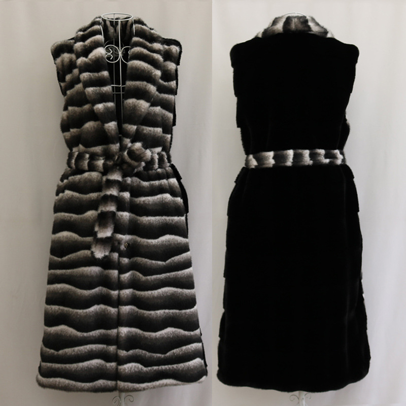 新しい女性の毛皮コートミンクファーロングコート冬暖かい大きなラペルゼブラベルト大きいサイズのベスト