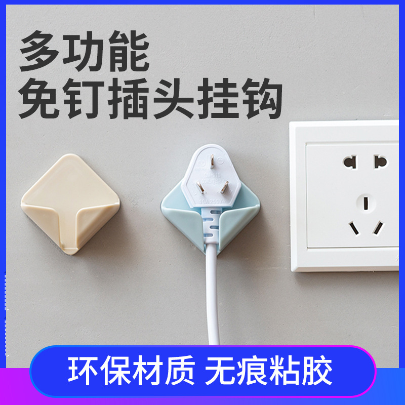 免打孔强力插头挂钩批发 透明粘贴电源线插座收纳整理架卡通挂钩